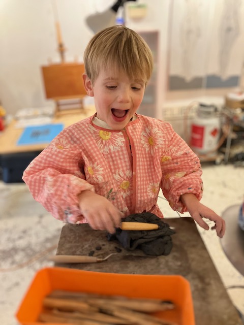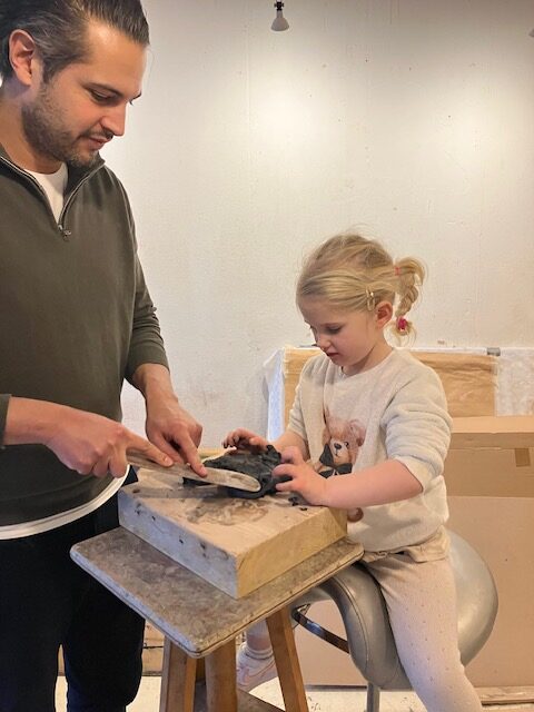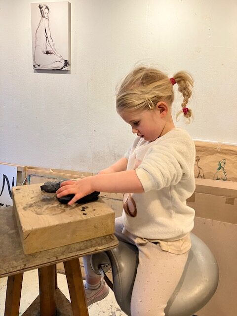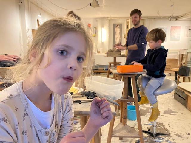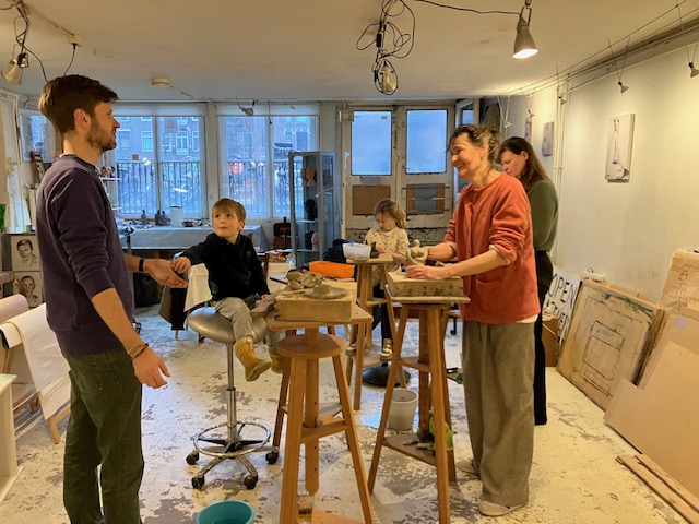 een uurtje kleien voor € 15,- met drank en hapjes (€ 2,- extra). Je kunt ook schilderen.